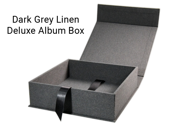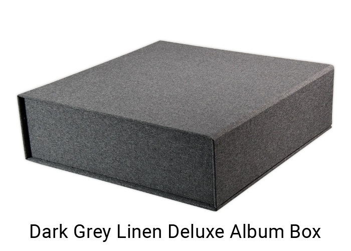 - Add on a Dark Grey Linen Deluxe Album Box available in 8×8, 10×10, and 12×12 sizes
