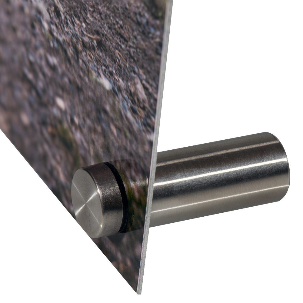 - Screw on stainless steel post caps and the metal print is ready to display